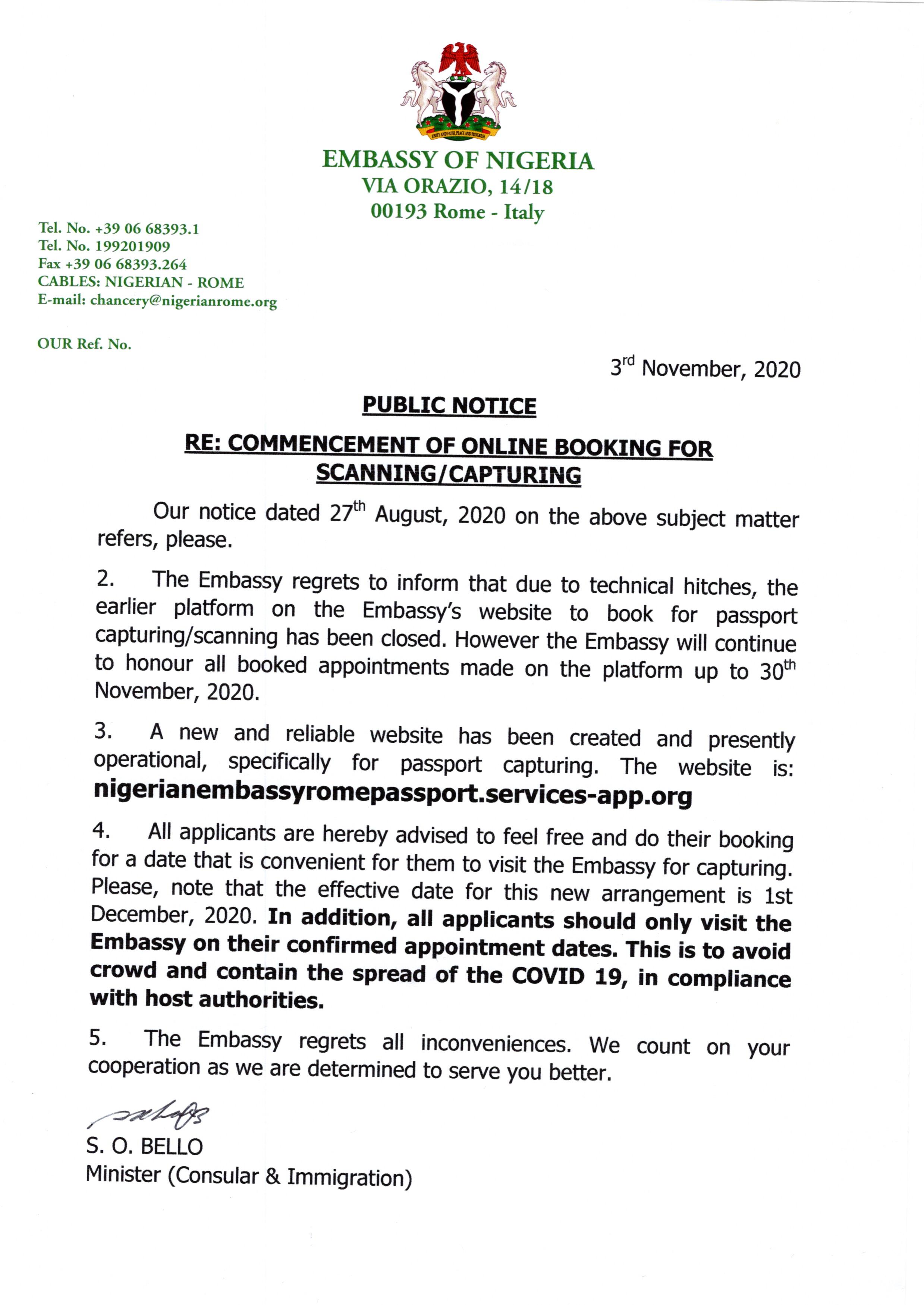 Embassy Appointment Scheduler allows you to book and schedule Passport appointment with the Nigerian Embassy Rome.